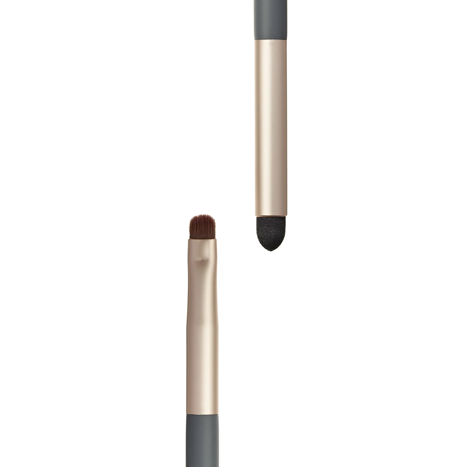 Ultra-small, dual-ended eye brush and smudger designed to apply creams and powders.